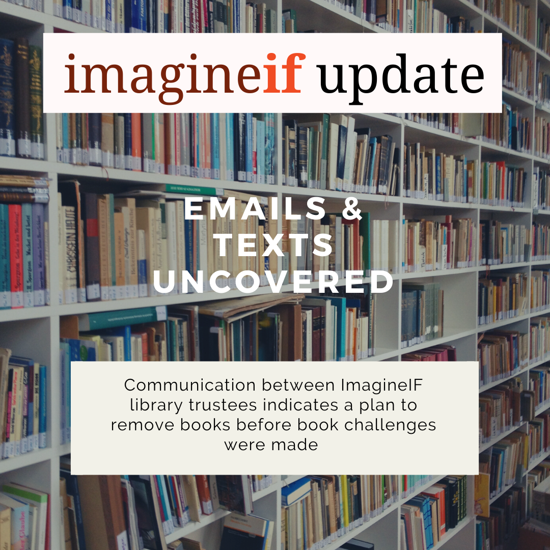 When three ImagineIF Library trustees made it clear that they wanted the power to remove books from the collection, we wondered what was going on behind the scenes. Comments and actions they made during public meetings seemed to indicate that they had been planning strategies together, which is in violation of open meetings laws.